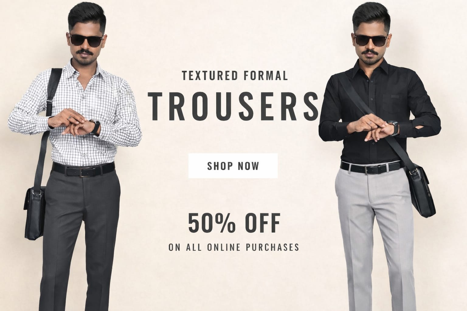 Cream colour Formal Trousers™ Stretchable And Wrinkle Free Fabric.